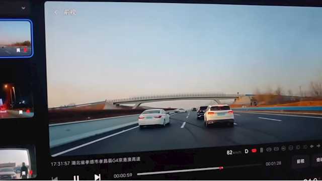 随后,车主发现车祸后,立即接管车辆,减速并急打方向,虽然当时速度仍有120km/h,但车身稳定的非常好。